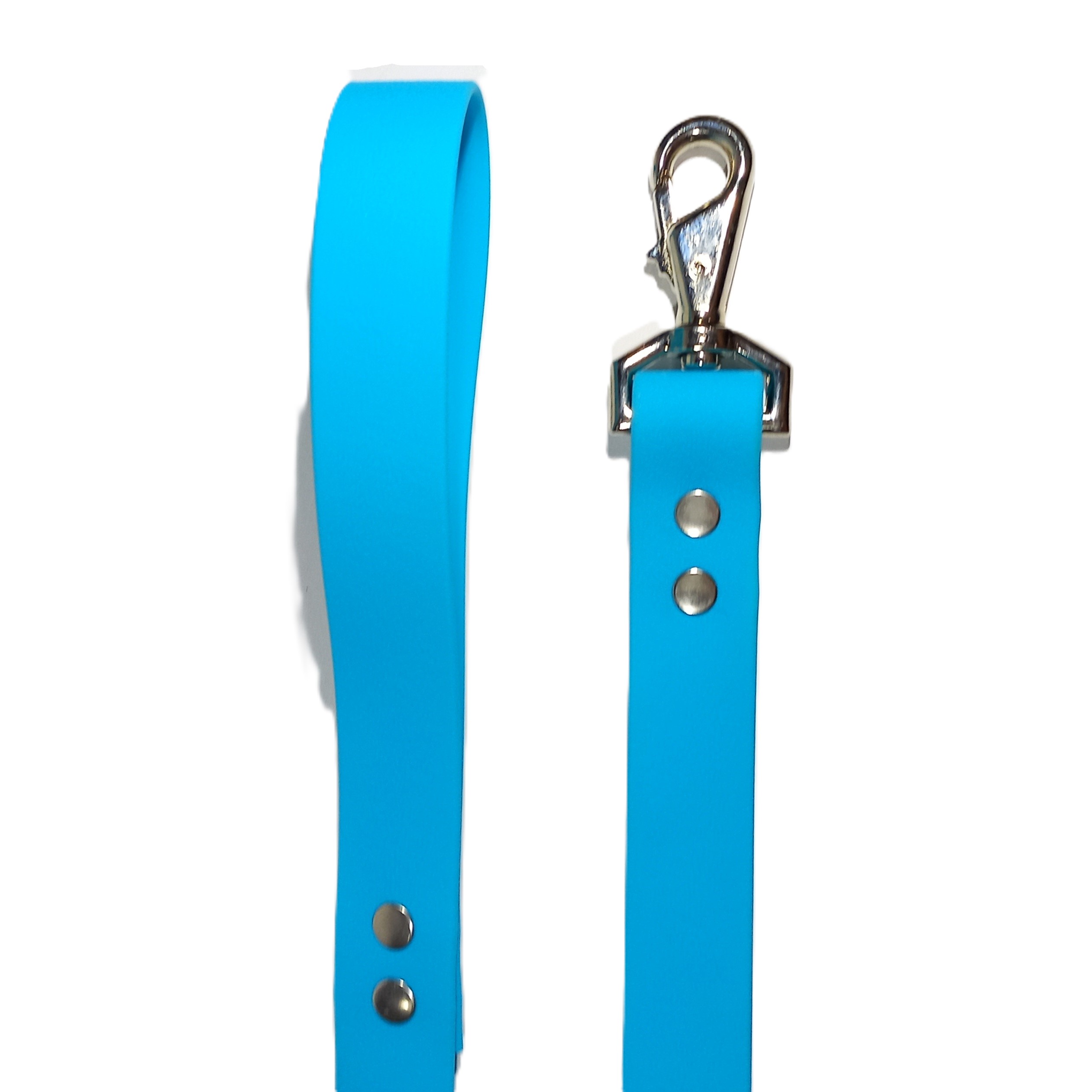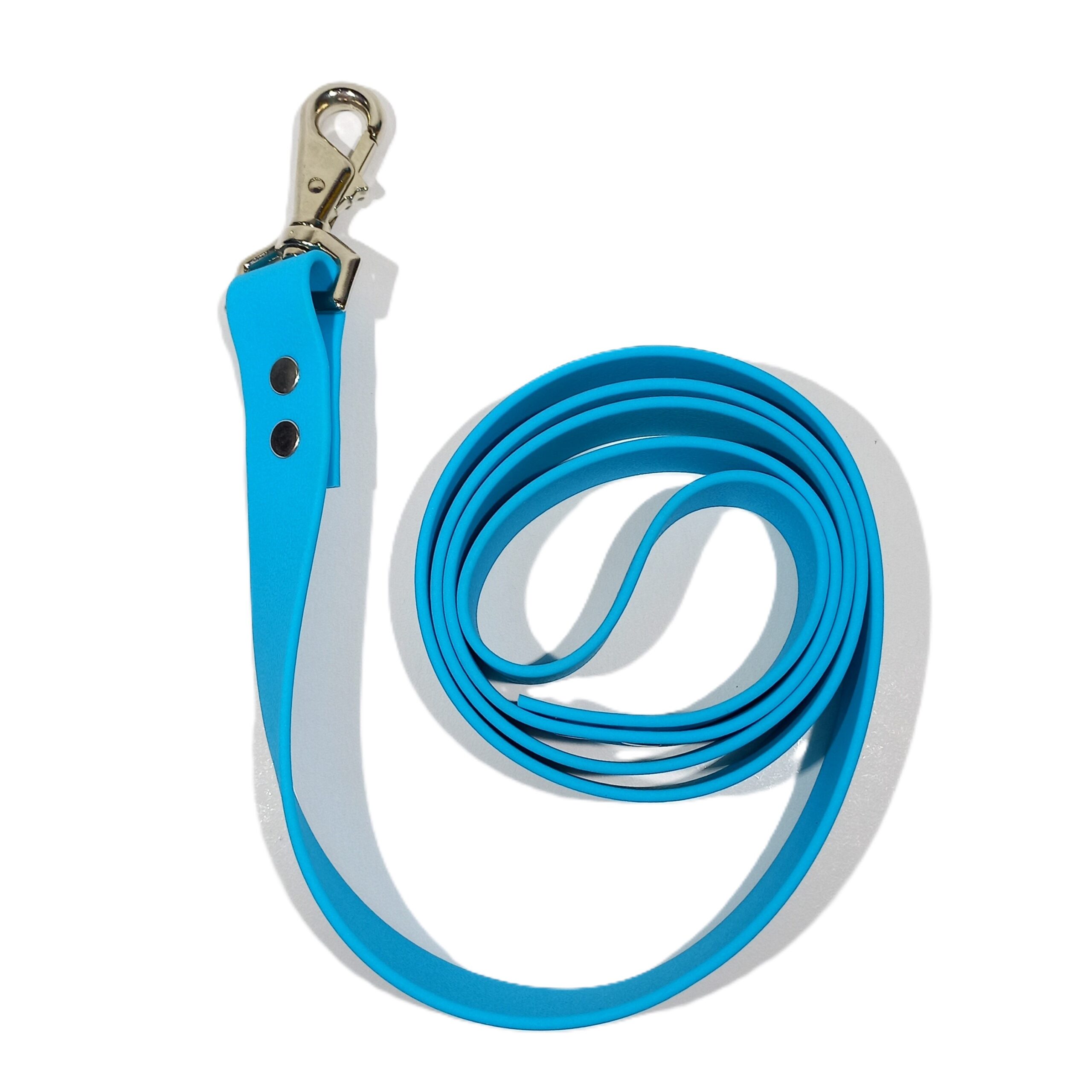 Nuestra correa de 1.2 metros es el complemento perfecto para los paseos ya que es 100% impermeable y sus herrajes son inoxidables. El mosquetón giratorio evita enredos y, en tallas M, L y XL, el mosquetón inverso garantiza máxima seguridad, incluso si tu peludito jala.